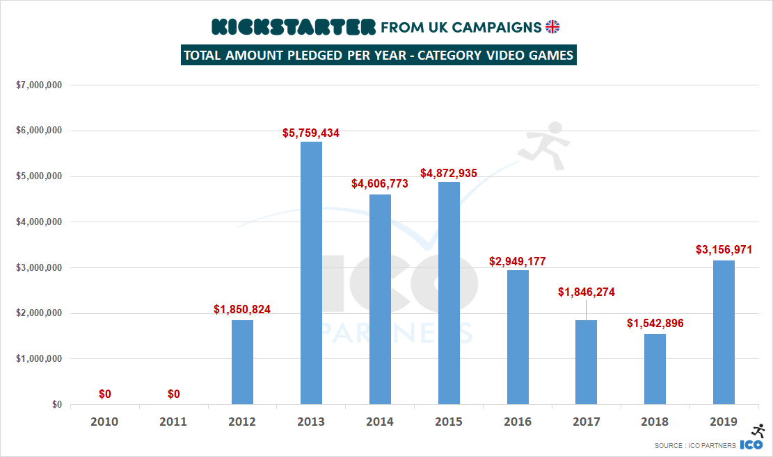 The recent release of the UKIEpedia initiative in the UK made me realise that I haven't shared data specific to the country in quite some time. This a very good opportunity to do so, using the same dataset that we collected for the yearly state of the game for Kickstarter.