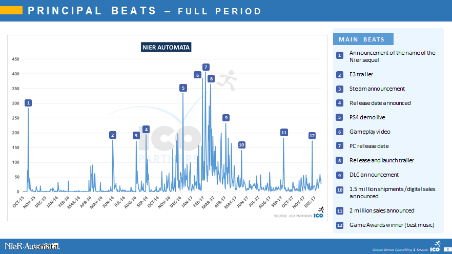 The report is short and to the point - it looks at how well different beats performed for Nier: Automata, from an online media coverage perspective.