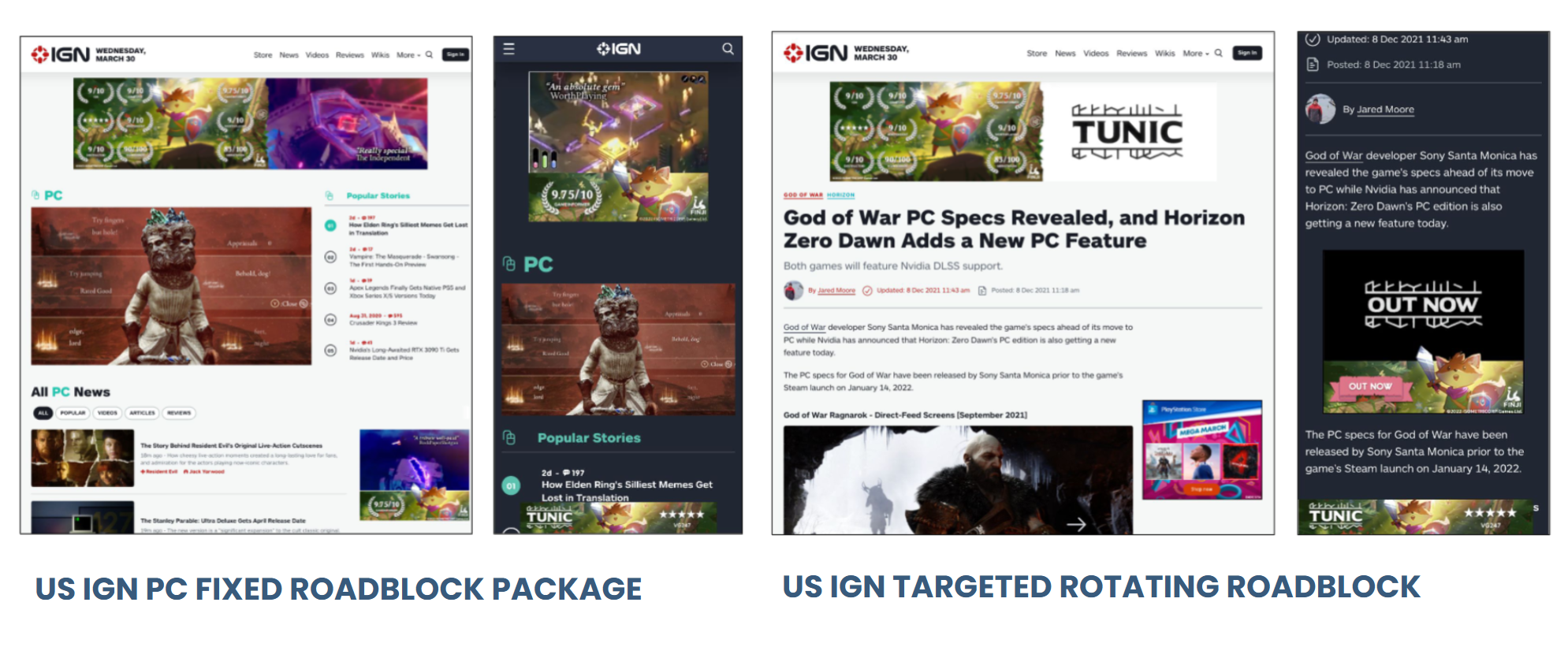 Partnering with IGN, ICO ran a paid campaign on IGN's Fixed PC and Xbox channels in the U.S. It performed much better than anticipated with a final delivery rate of 109%, with the Fixed Roadblock performing best at 125%.